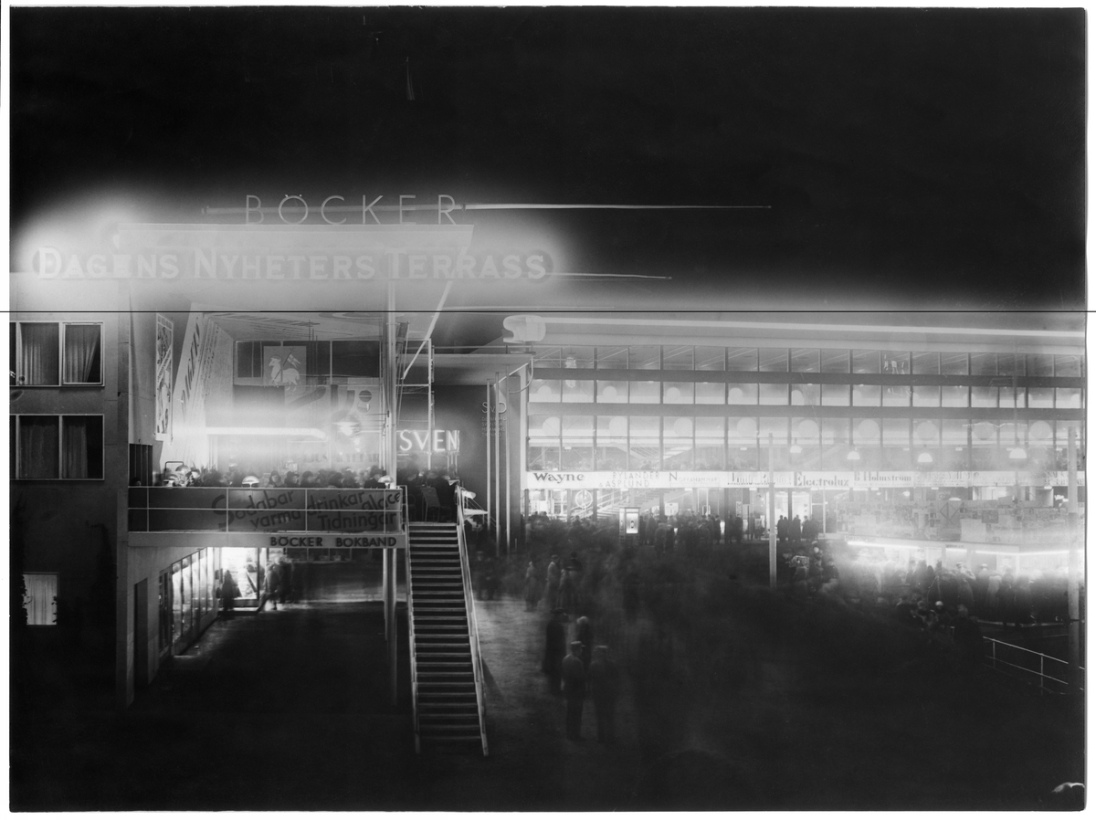 Dagens Nyheters terass med cafè, ibakgrunden huvudrestaurangen