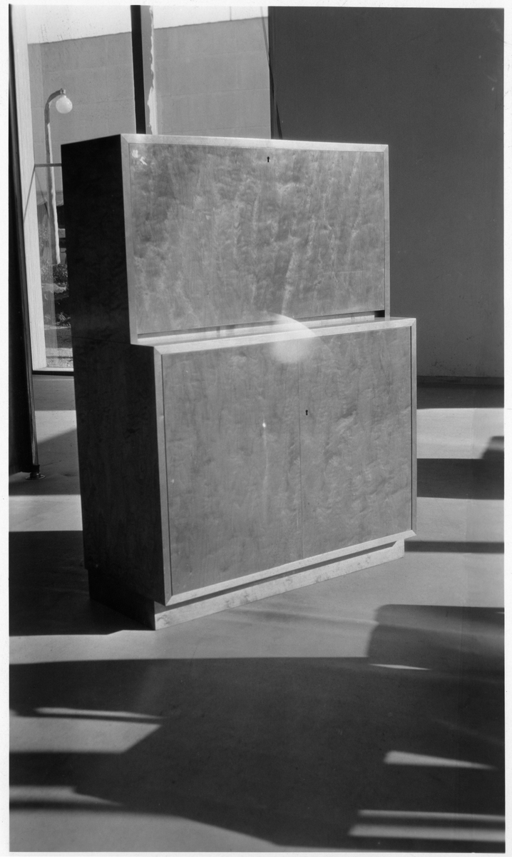 Titel: Stockholmsutställningen 1930 Skåp med skrivplats och bäddbar soffa
