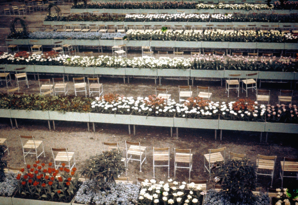 Festplatsen, stolar, blomlådor