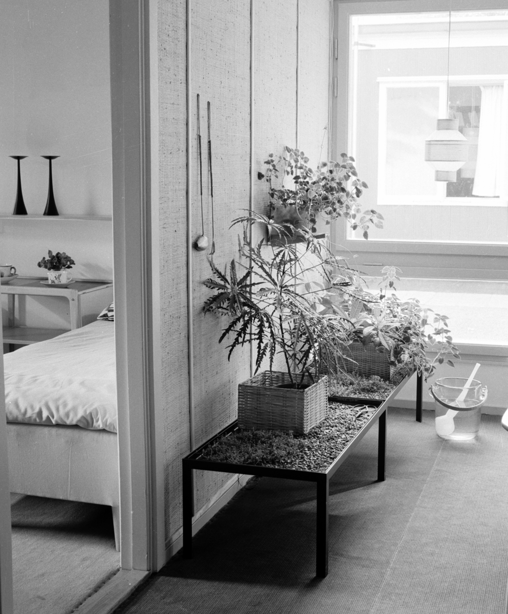 Interiör, blombord invid fönster. Från Hem i Sverige-husets finrum