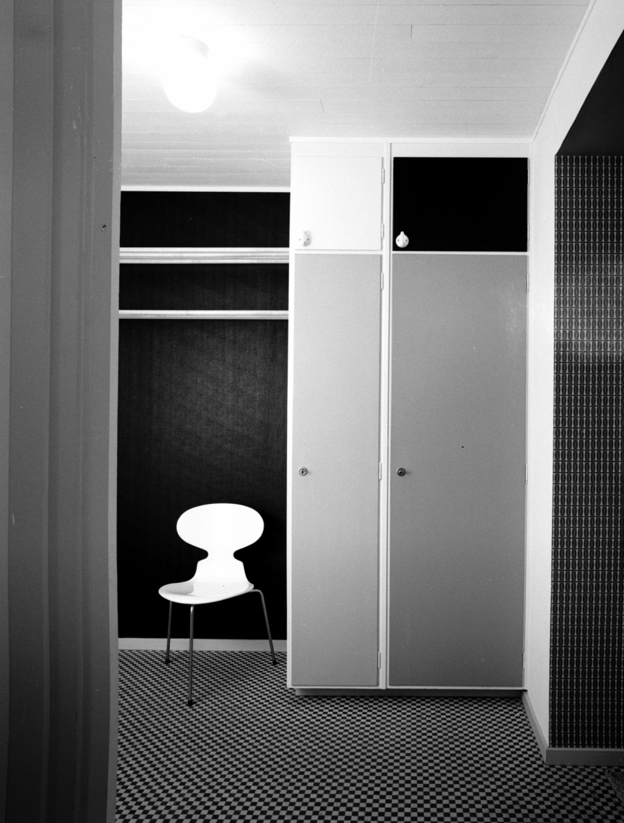 Skal och kärna, interiör. Skåpinredning i entrén med stolen Myran.