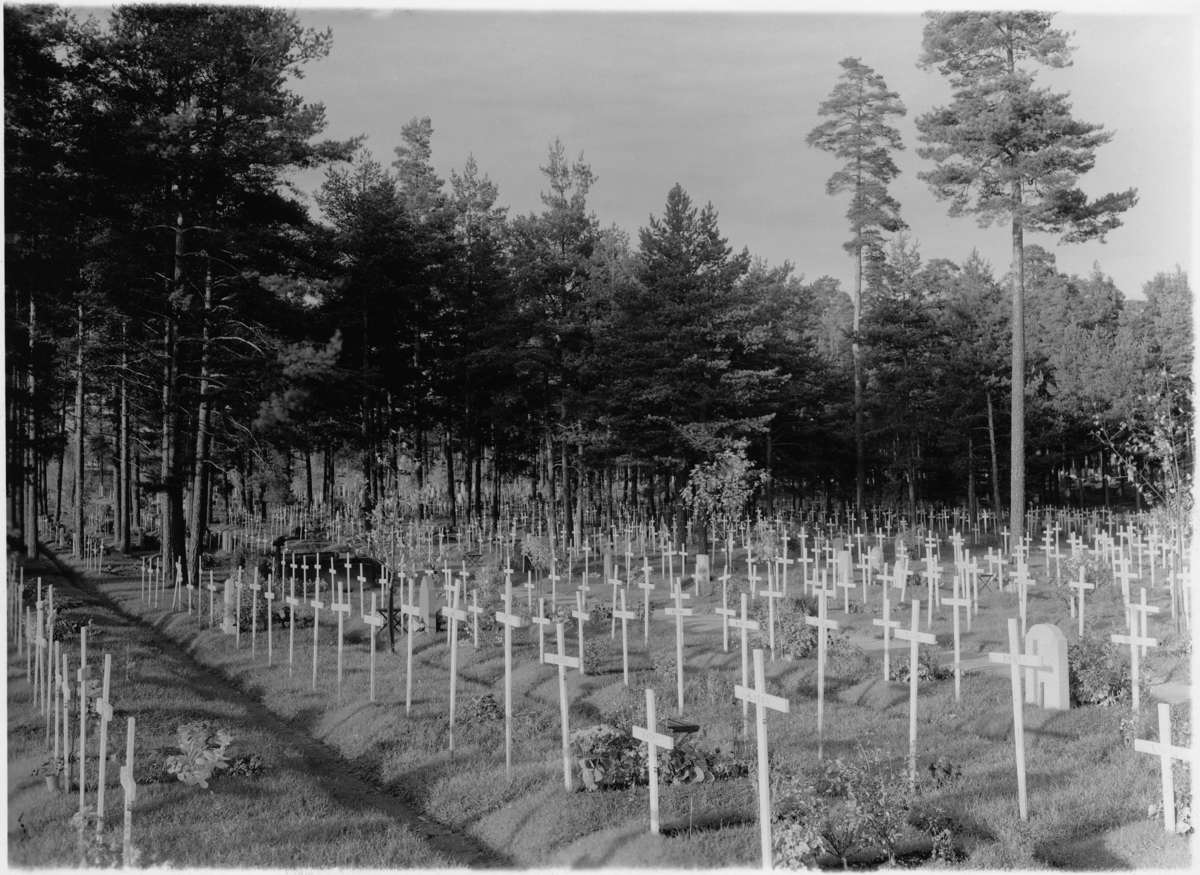 Titel: Skogskyrkogården Gravar omgivna av tallar