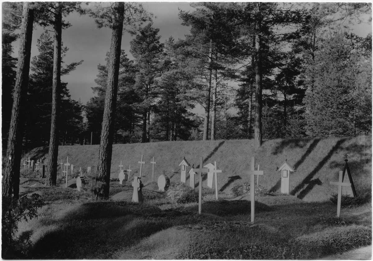 Titel: Skogskyrkogården Gravar omgivna av tallar