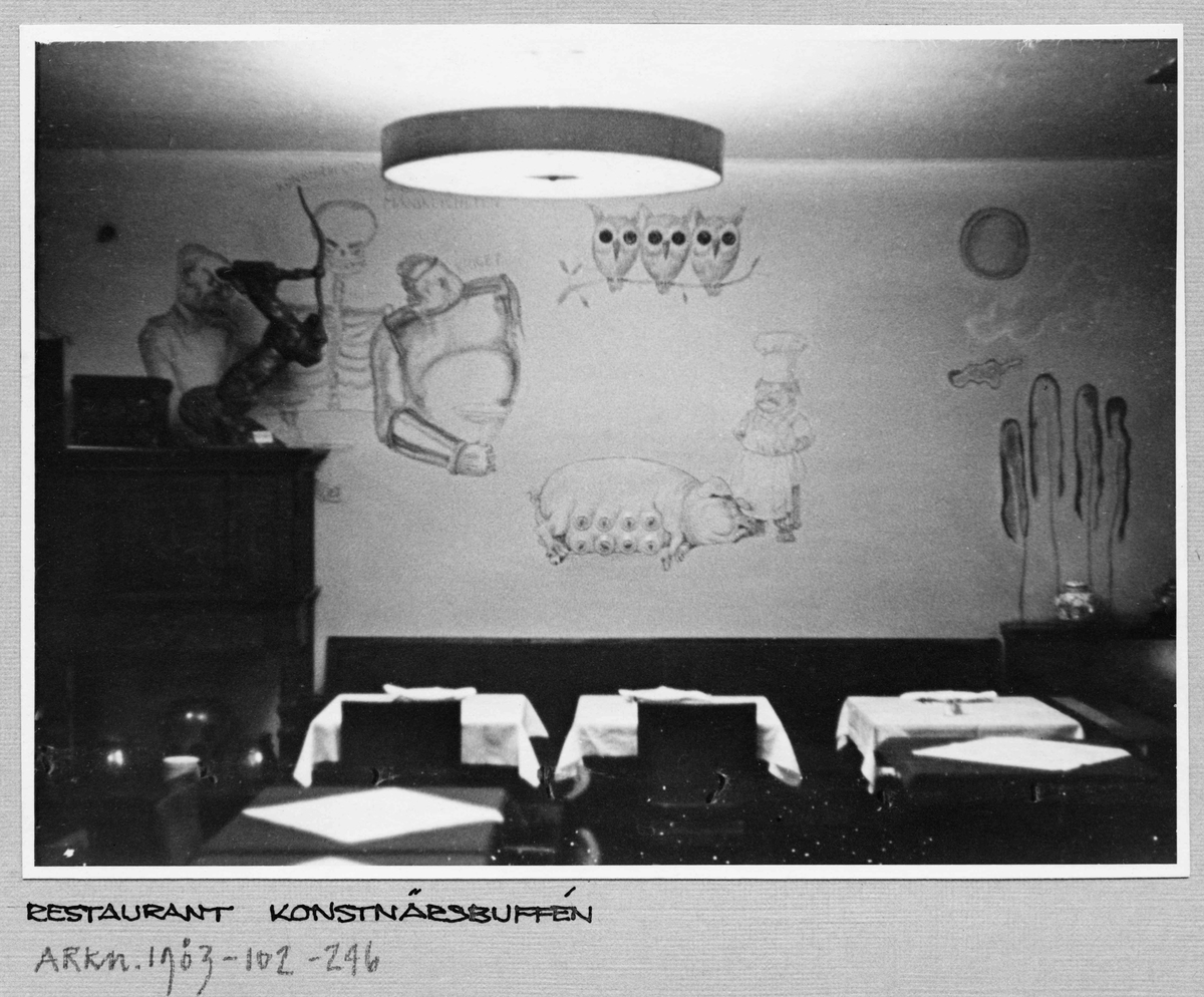 Titel: Restaurant Konstnärsbuffén Väggmålning Interiör