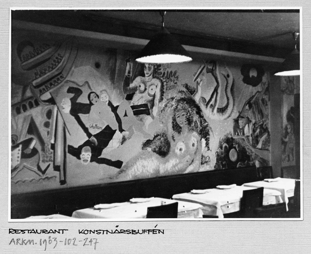 Titel: Restaurant Konstnärsbuffén Väggmålning Interiör