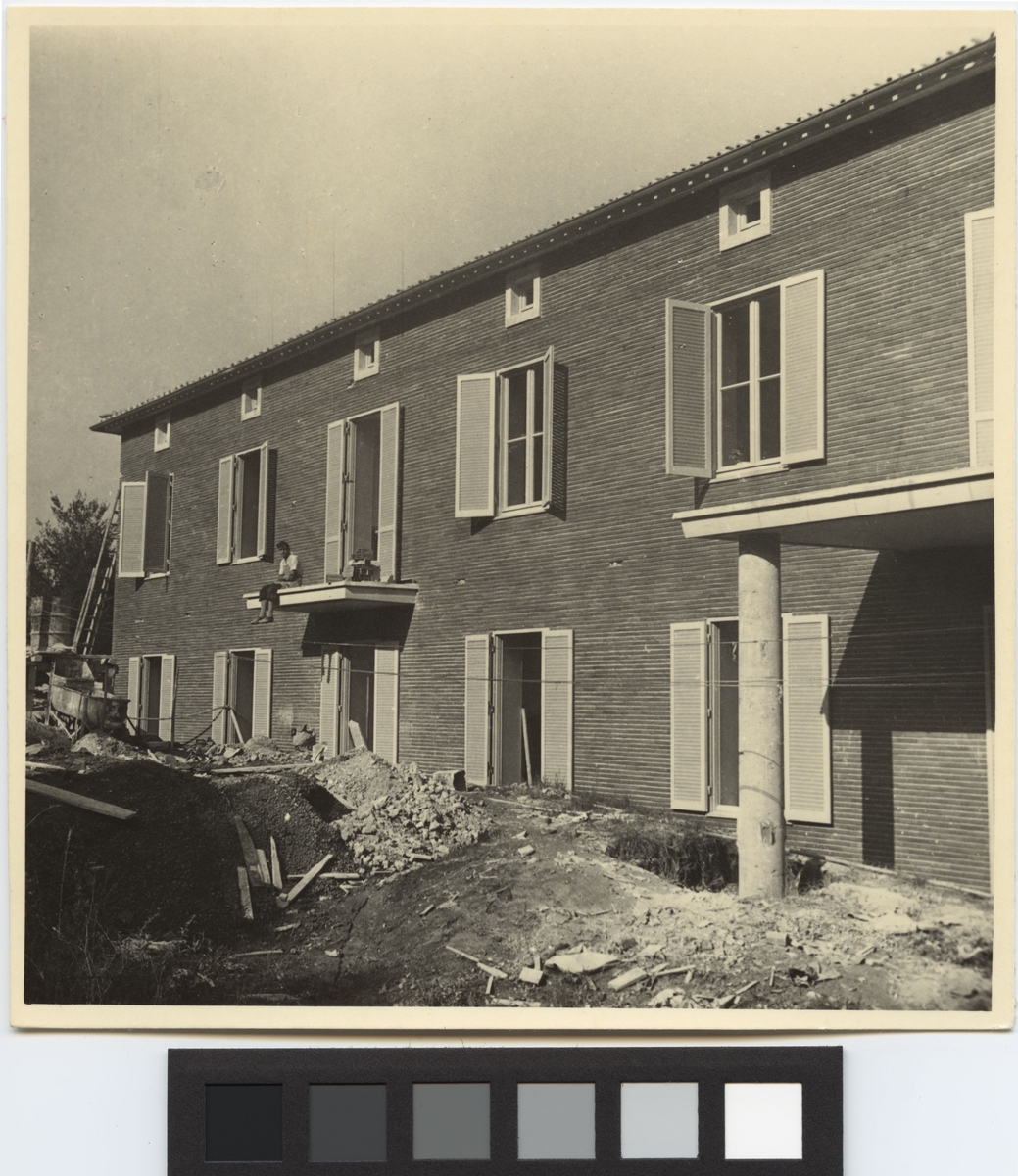 Exteriör, bostadsflygeln under byggnadsprocessen.