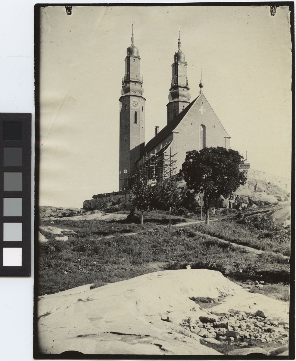 Titel: Högalidskyrkan Exteriör under byggprocessen. Vy från väst.