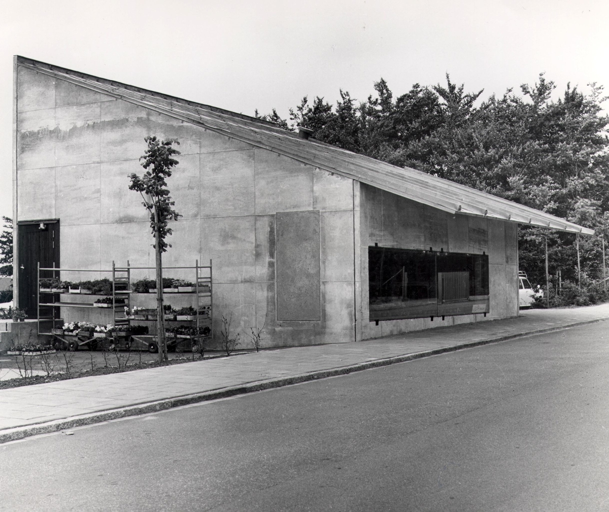 Exteriör. Perspektiv mot gatan. Betongbyggnad.