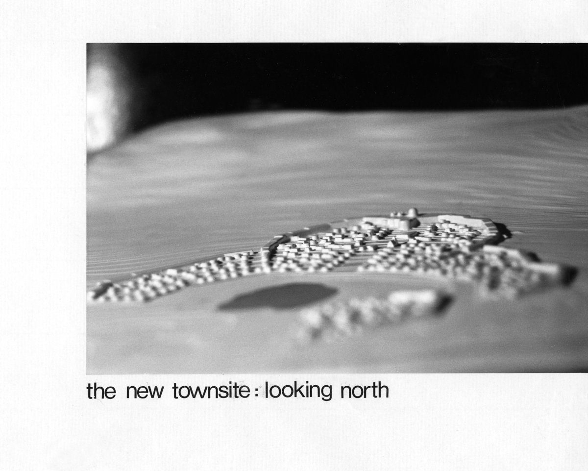 Titel: Resolute Bay Modellfoto med text: The new townsite: looking north