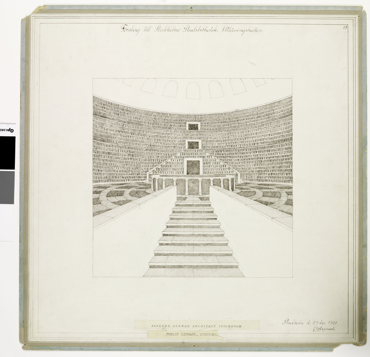 Titel: Stadsbiblioteket Perspektiv utlåningshallen