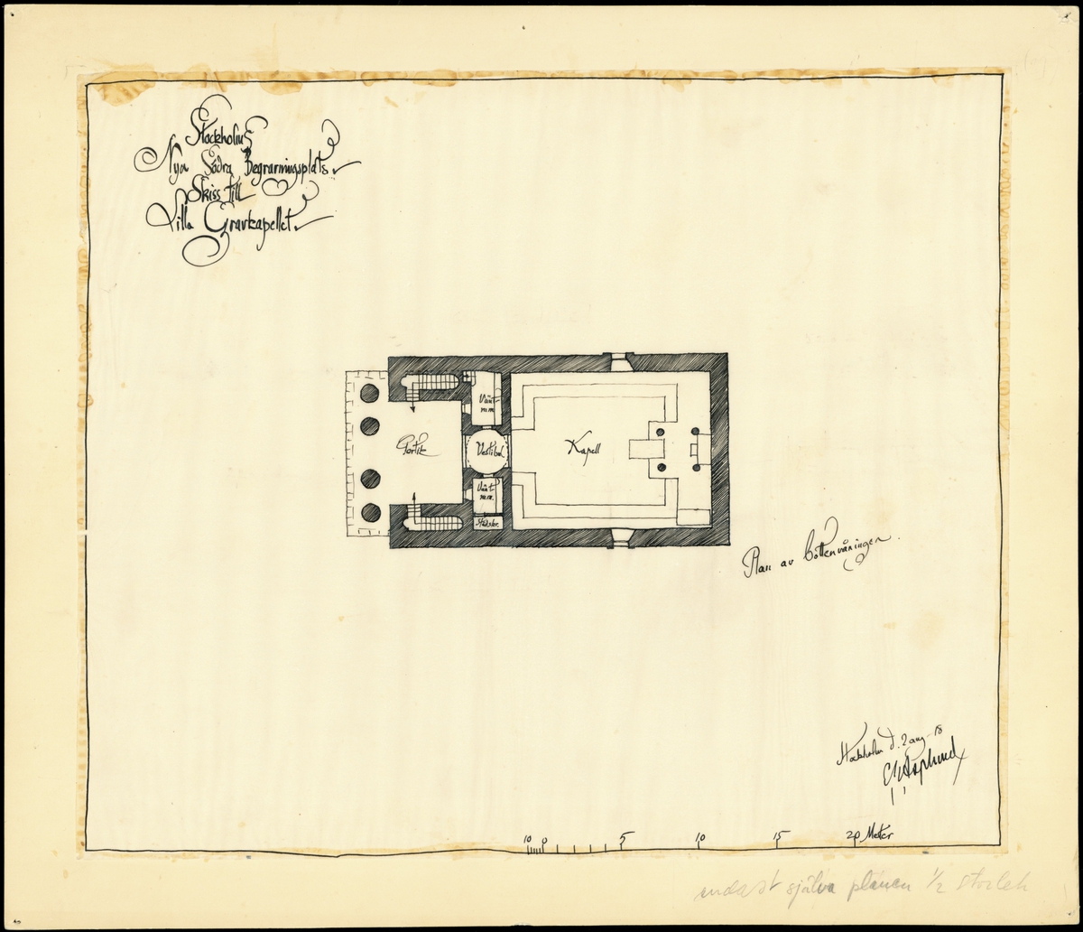 "Lilla kapellet": första förslag till Skogskapellet, plan