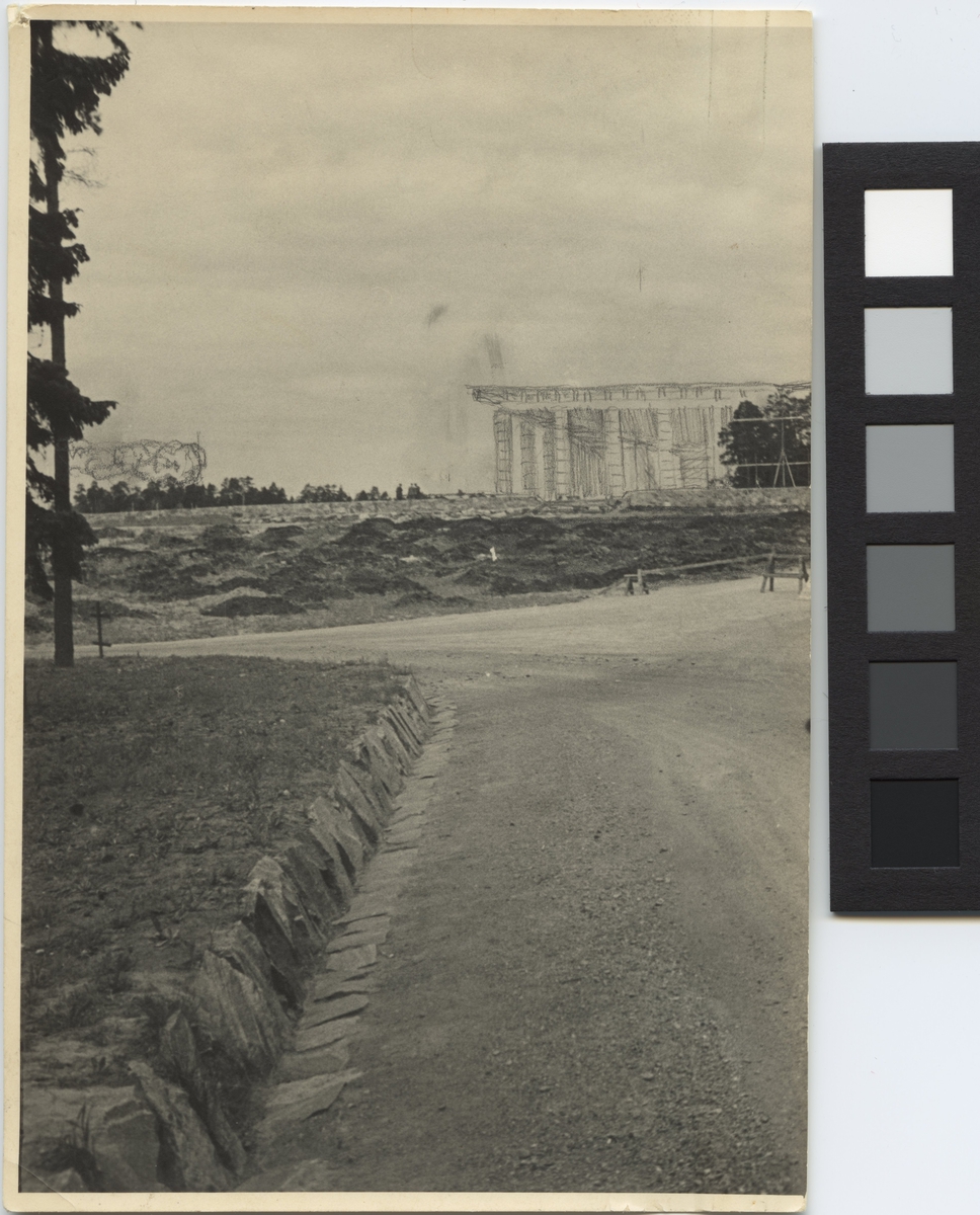 Titel: Skogskrematoriet, Skogskyrkogården Utstakning på byggplatsen