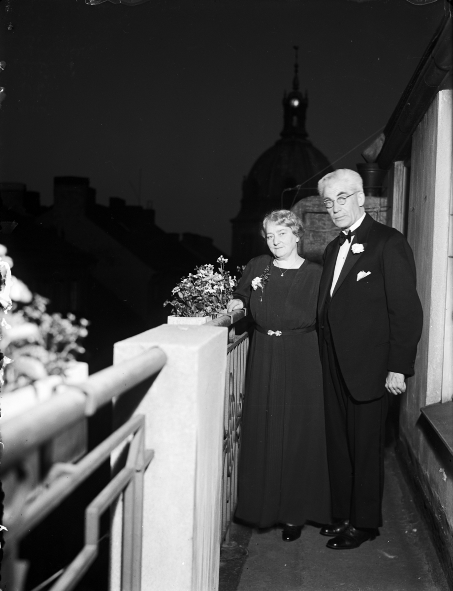 Moster Anna Olsson med man på en balkong.