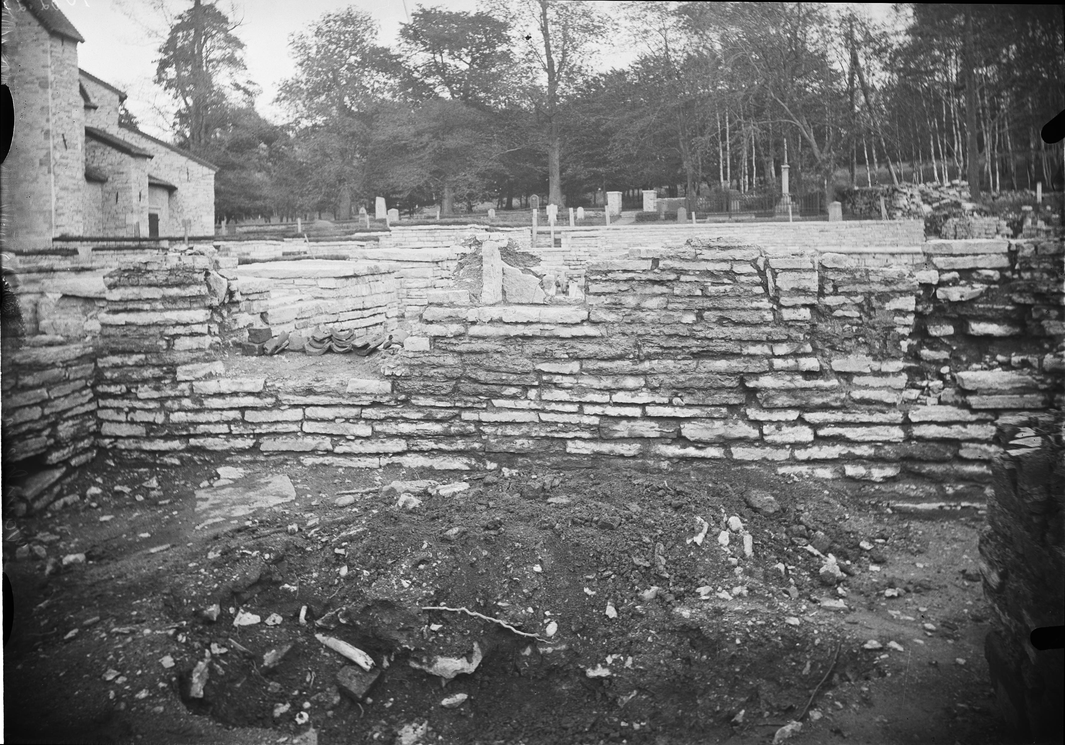 Kökets innerväggar, nordöstra hörnet och östra väggen. Från väster.