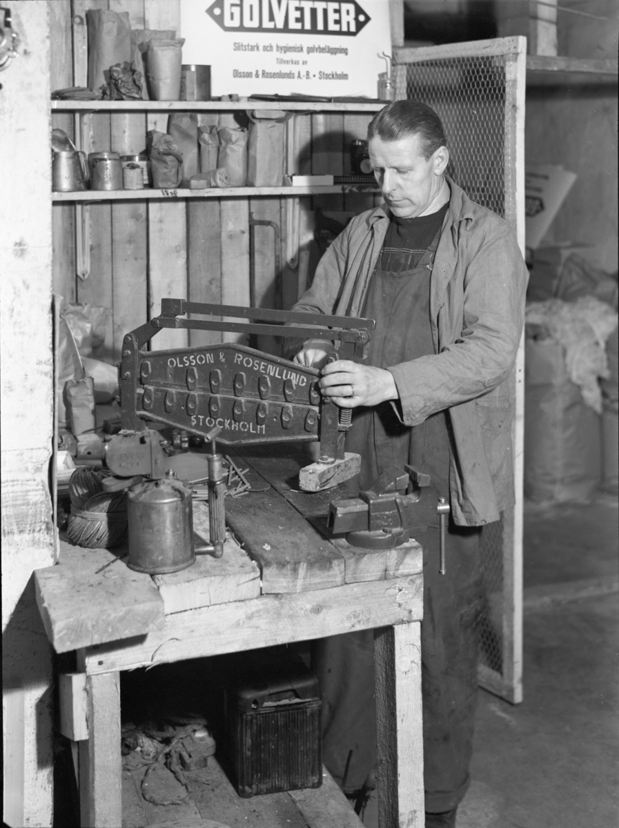 Man i arbete på lager för plattläggningsfirma