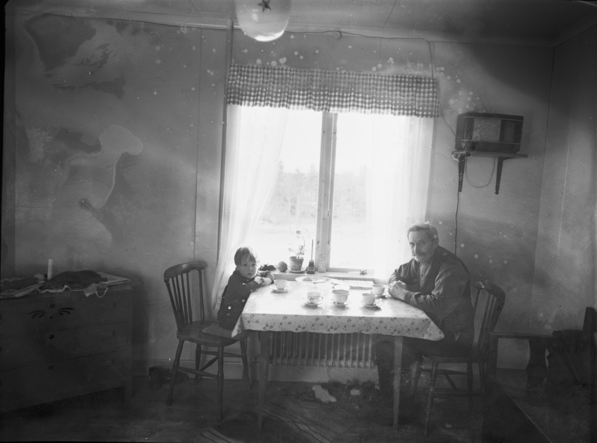 Man och barn dricker kaffe