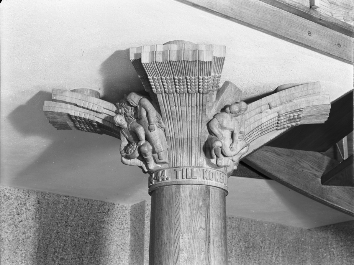 Titel: Skytteholm Kapitäl med män, kvinnor och sädesax Interiör