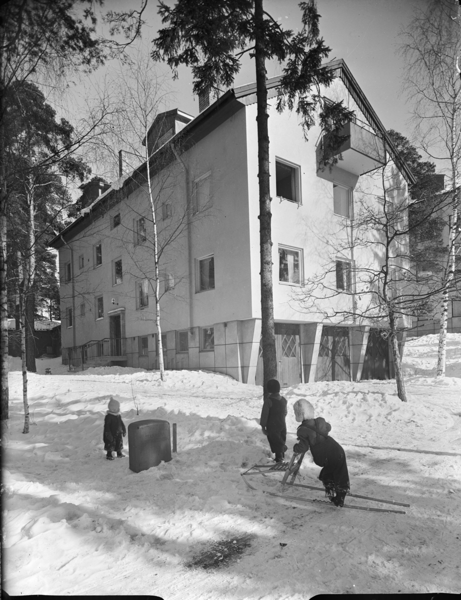 Titel: Flerbostadshus i kvarteret Bykkaret, Essingen Exteriör