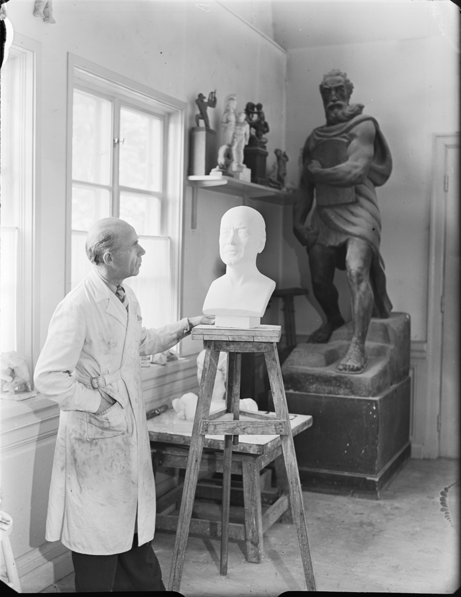 Porträtt av skulptör Anders Jönsson i sin ateljé