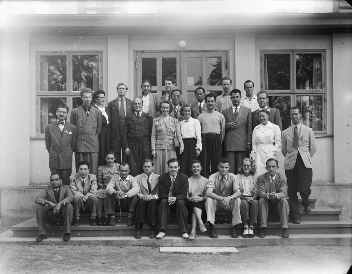 Titel: Gruppbild, Jakobsbergs folkhögskola Internationell grupp med 28 personer Exteriör
