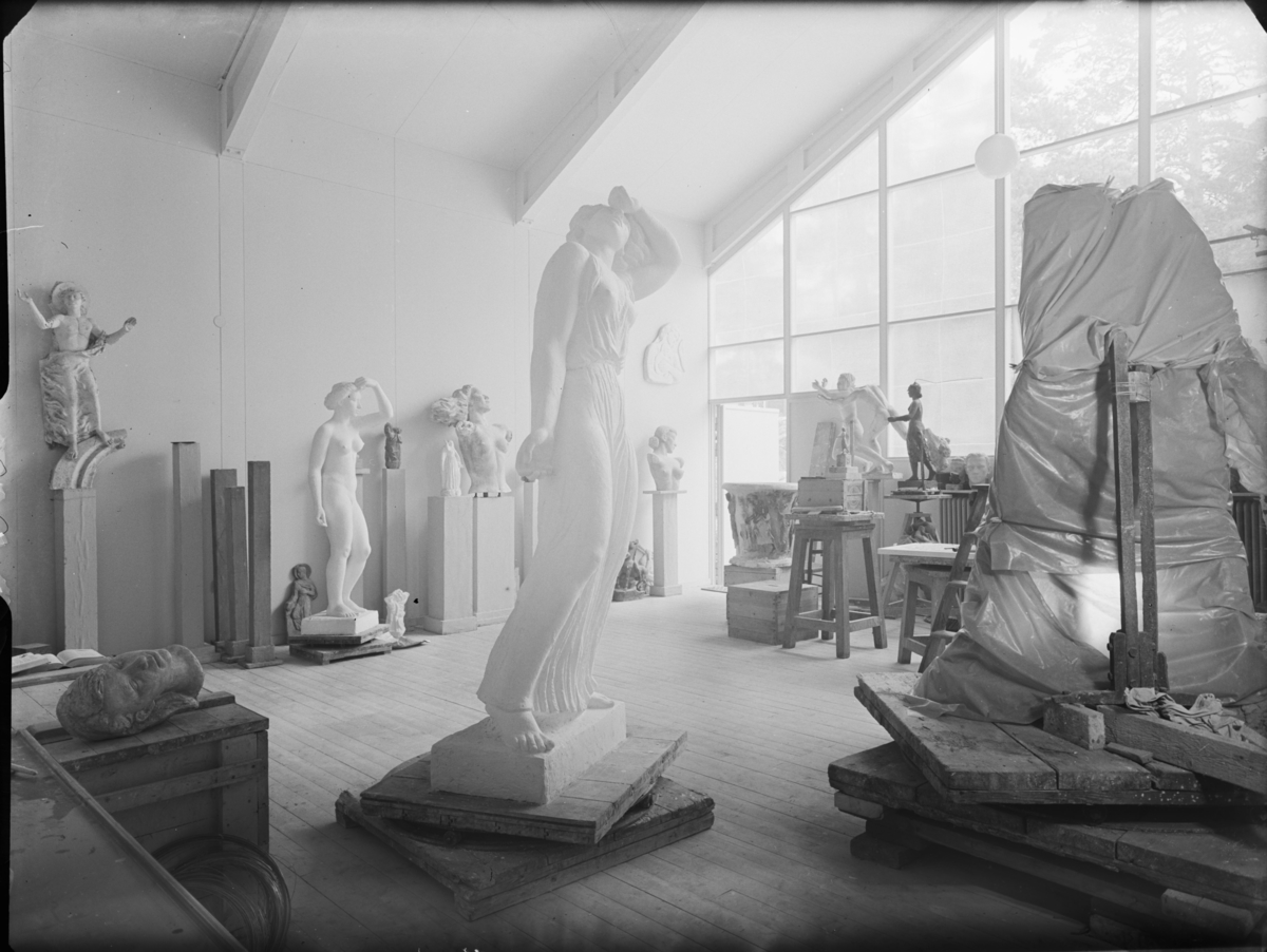 Skulptören Axel Wallenbergs ateljé med skulpturer