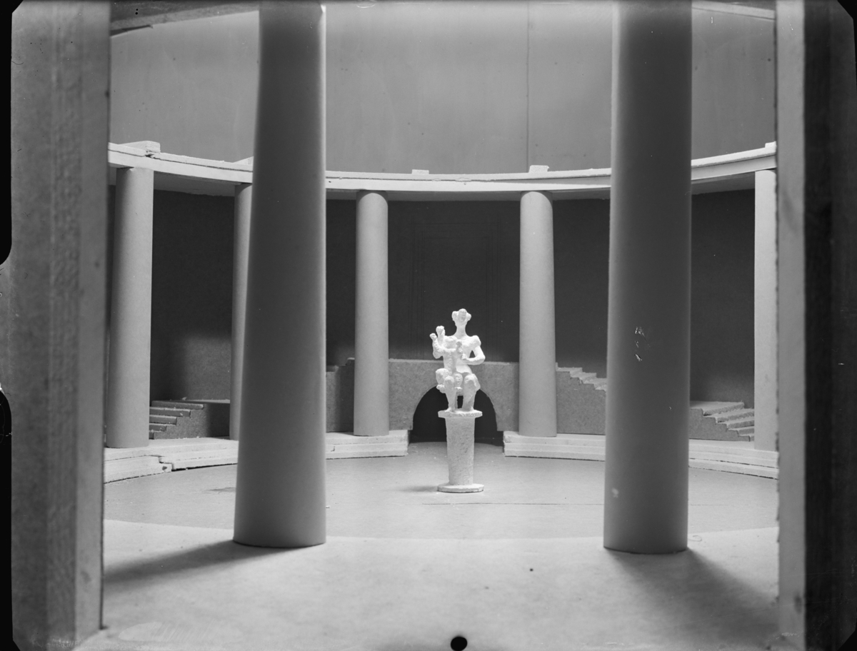 Modell föreställande Kanslihusets gård med skulptur av Bror Marklund