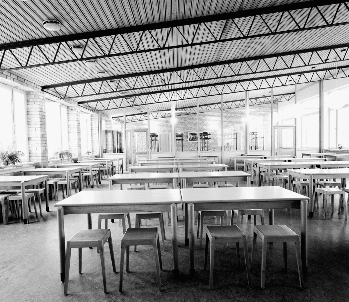 Interiör av matsal med snedställt tak
