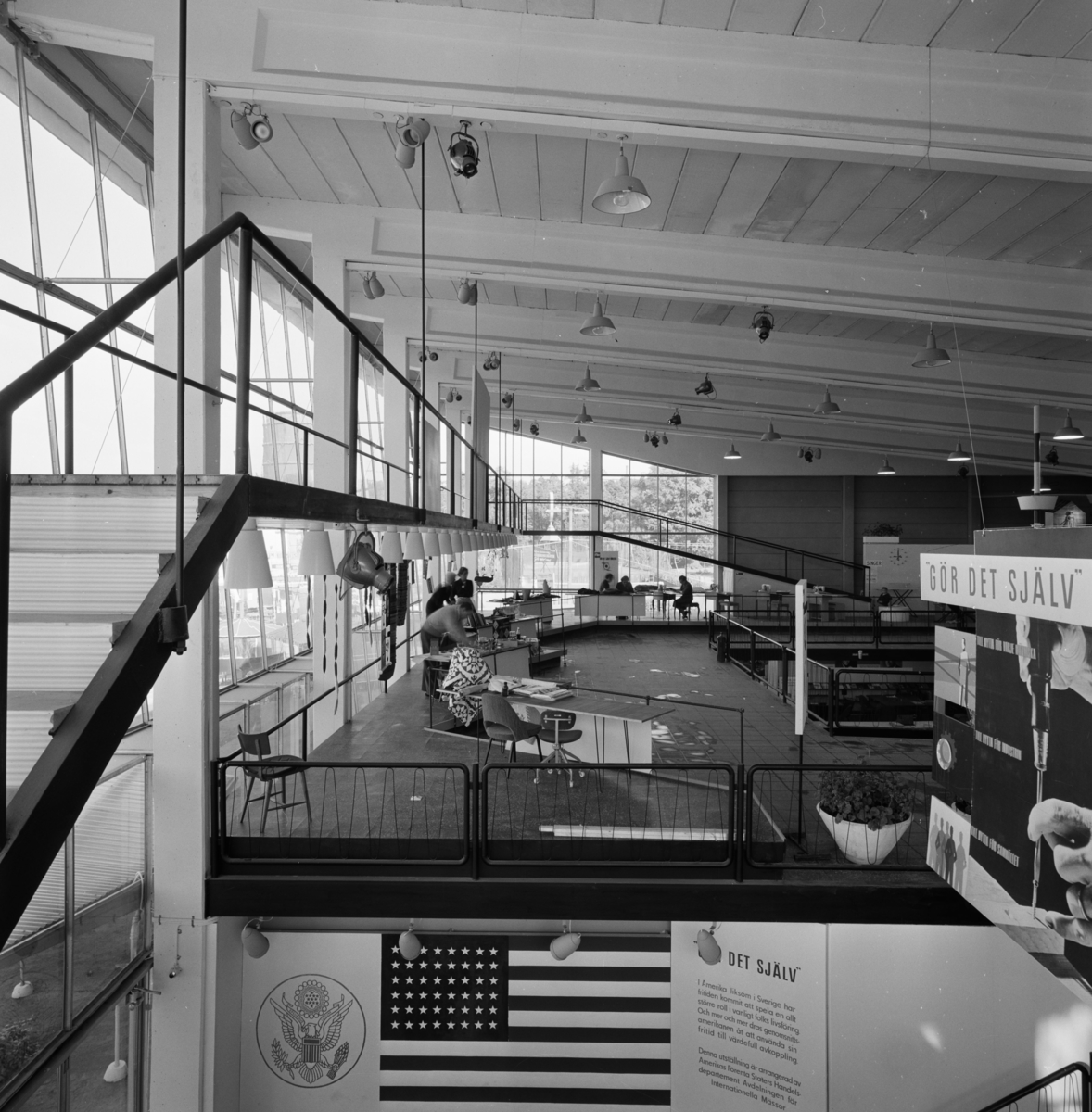 Titel: Sankt Eriksmässan Interiör av utställningshall med avdelningen Gör det själv i förgrunden