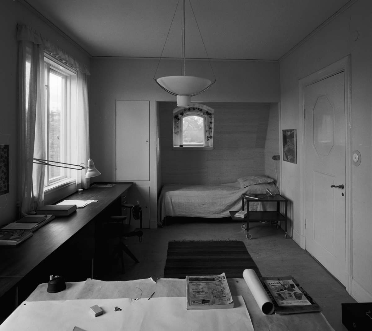 Interiör, arbetsrum med alkov för säng