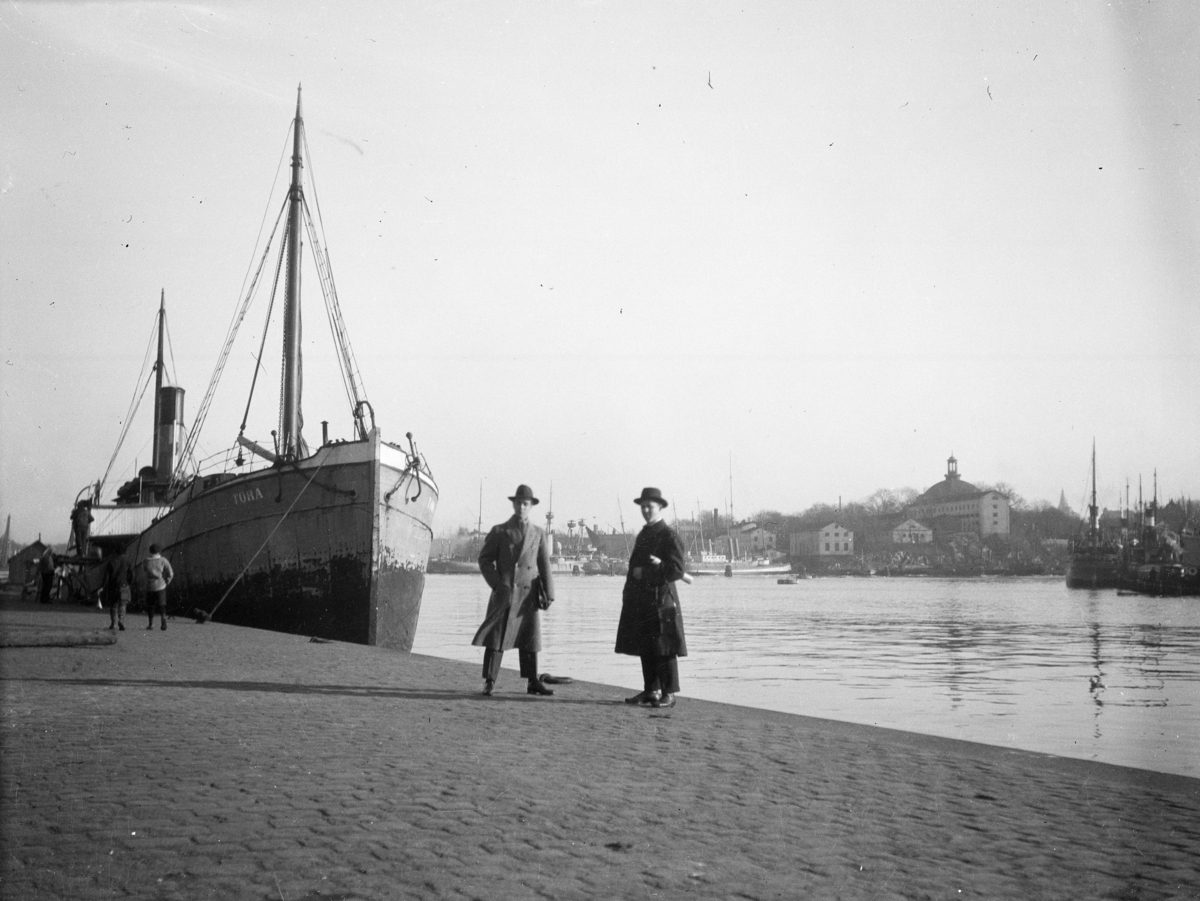 Två män på kajen vid Strandvägen, Stockholm.
