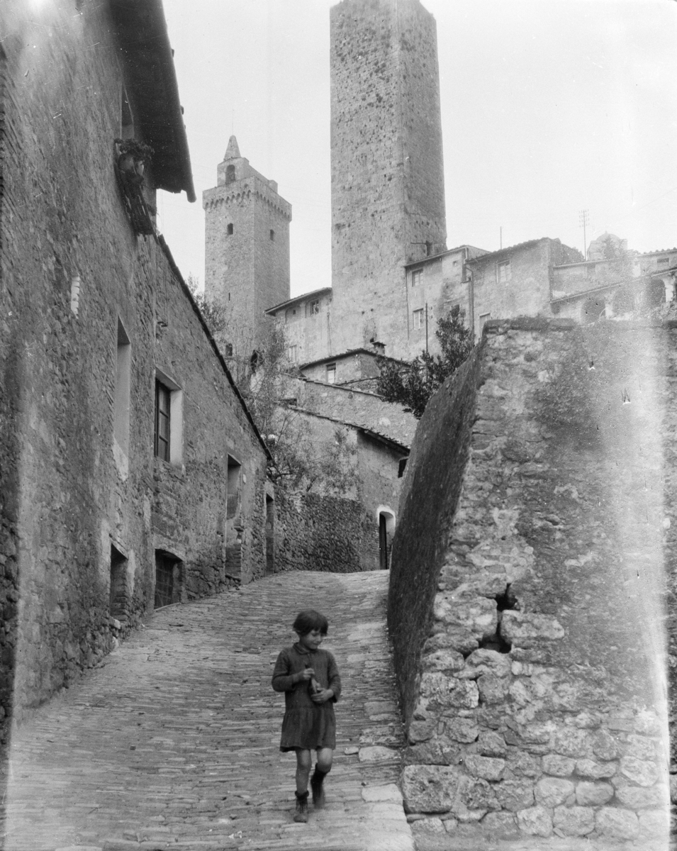 Titel: Gränd med hus och ett barn Resebilder från Italien Exteriör
