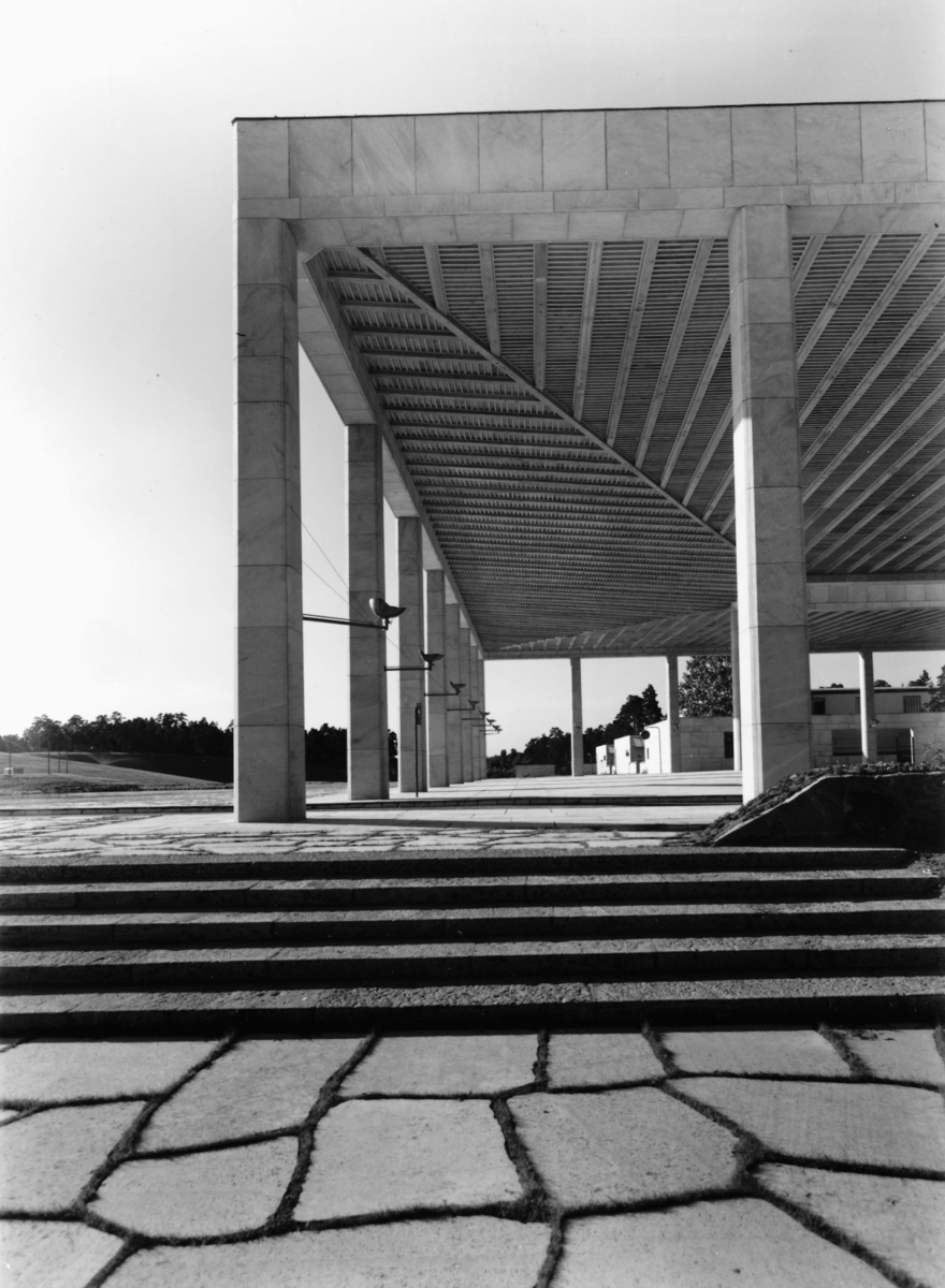 Exteriör. Monumentalhallen mot norr. Detalj av takkonstruktionen