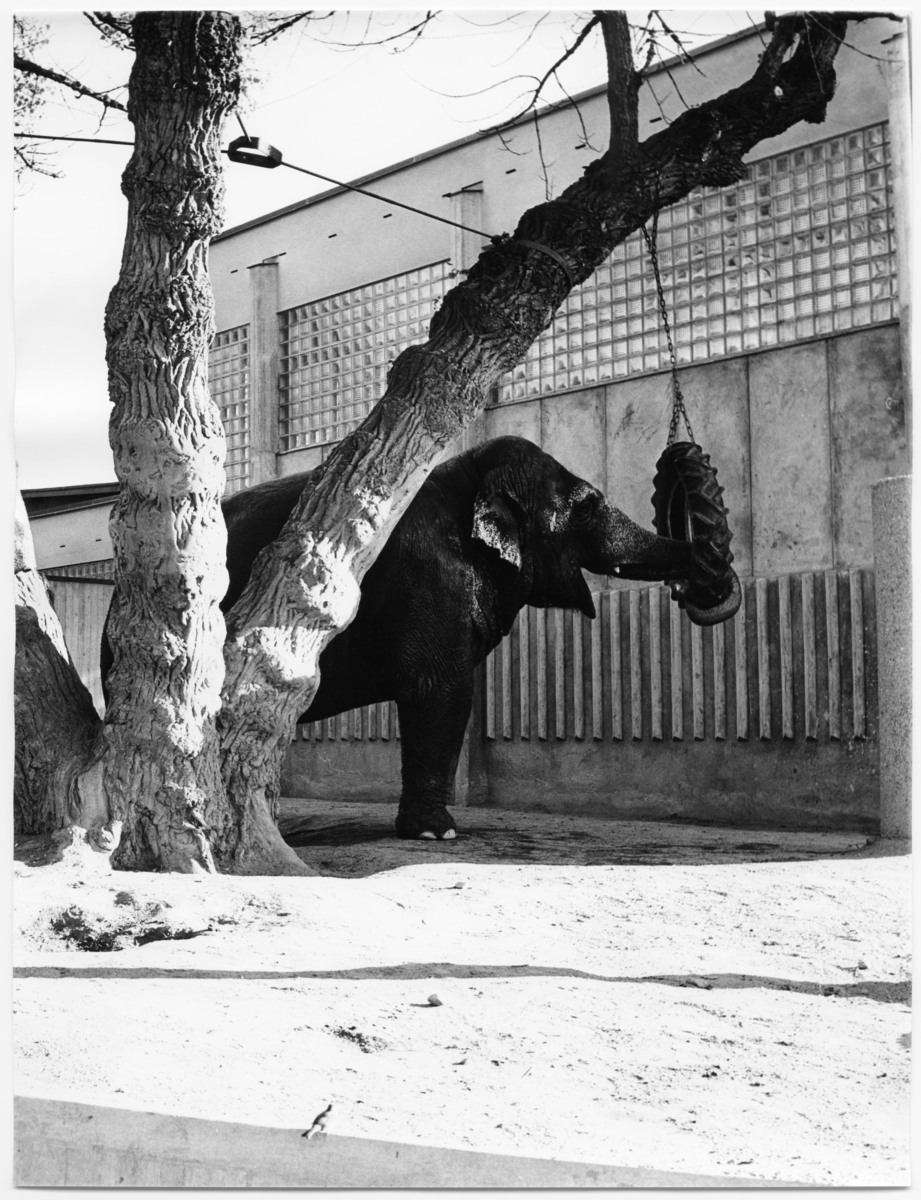 Titel: Skansen Elefanthus. Exteriör med elefant