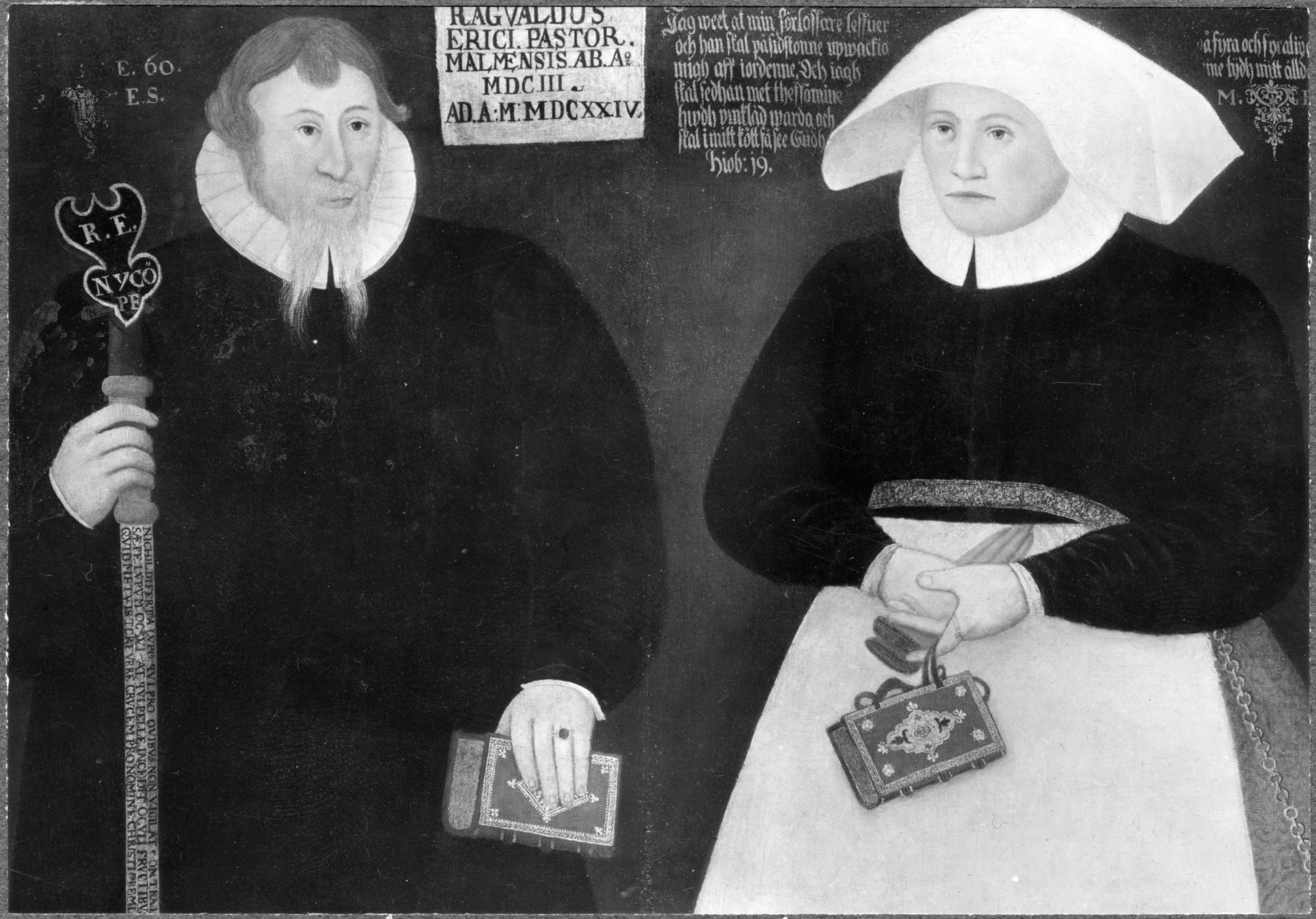 Porträtt föreställande pastor Ragvaldus Erici, kyrkoherde 1603-18, och hans hustru.