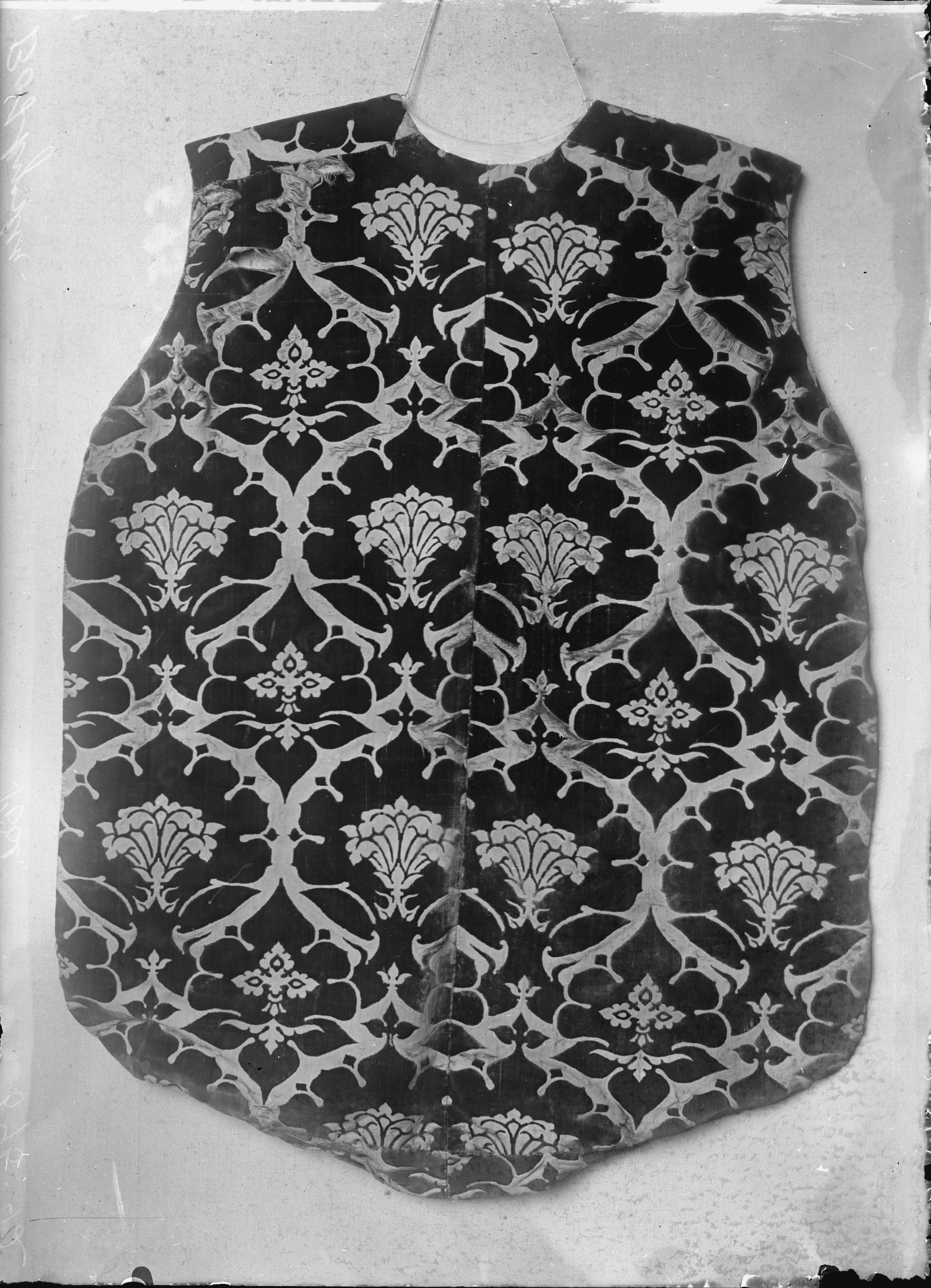 Mässkake. Italienskt tyg från 1400-talet. Mässheke tillverkades 1733-1735. Tyget från en äldre korkåpa.
