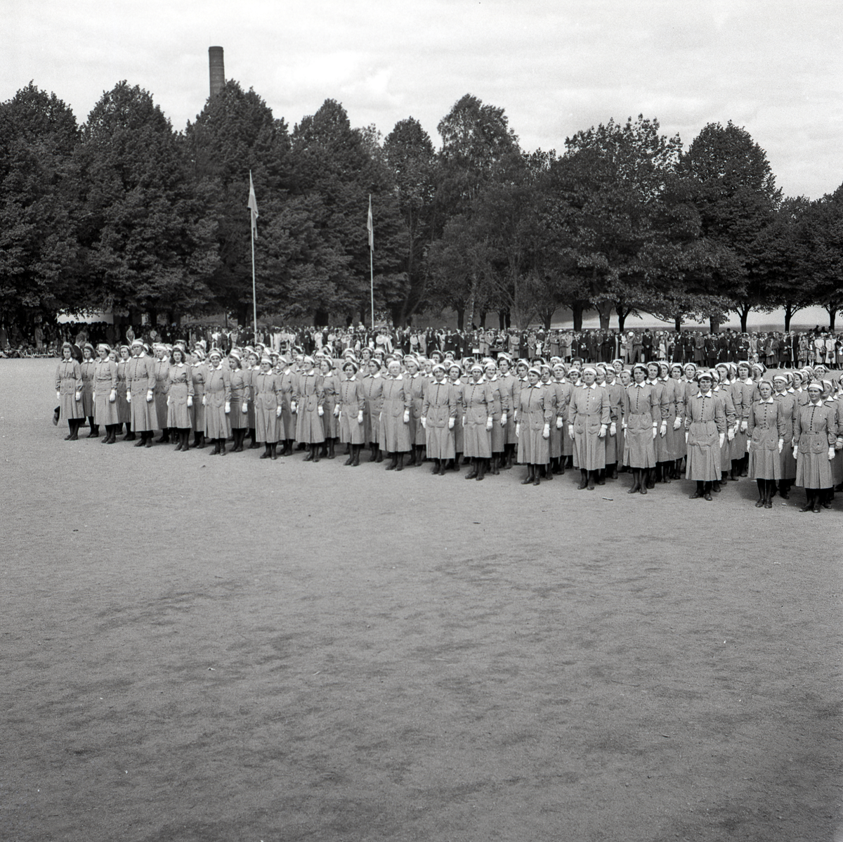Vy över skolgården till Växjö Högre Allmänna Läroverk.