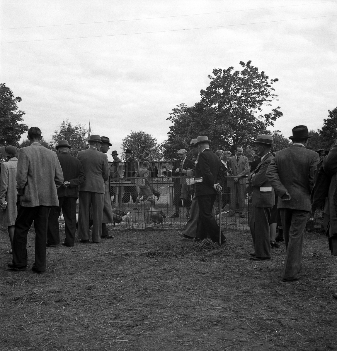 Foto av fjäderfäburarna vid lantbruksmötet.