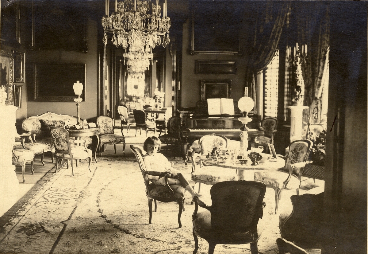 Pojke sittandes i salongen på Teleborgs slott. Cirka 1916.