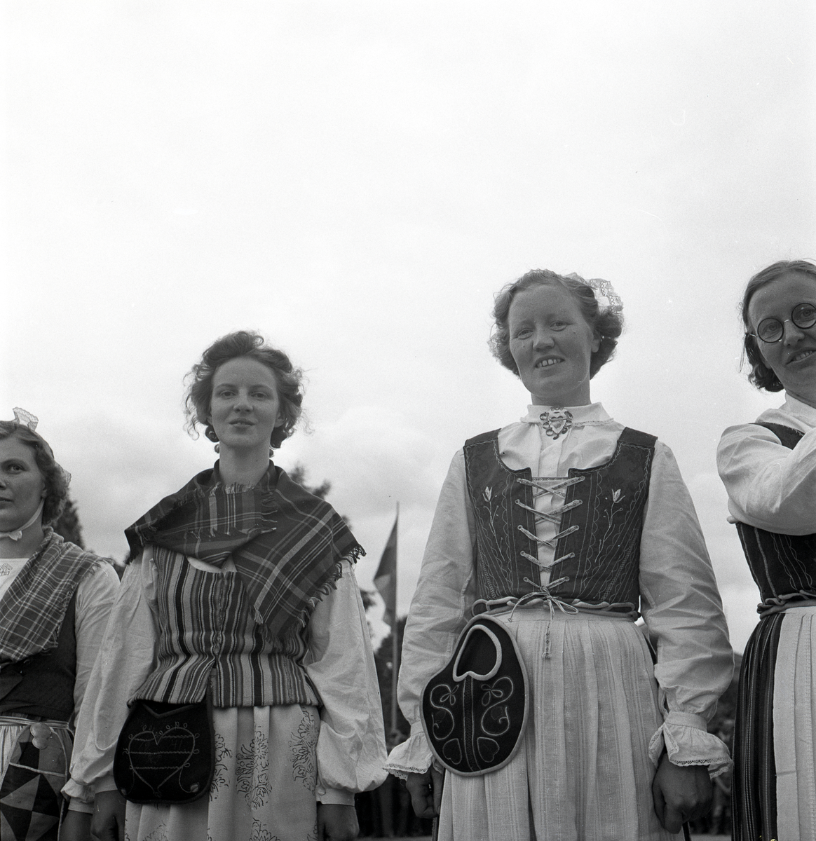 Kvinnor i olika folkdräkter.