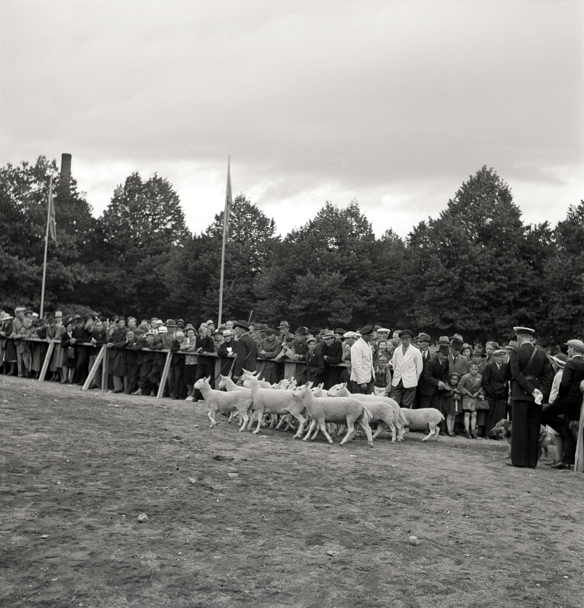 Uppvisning av får på skolgården.