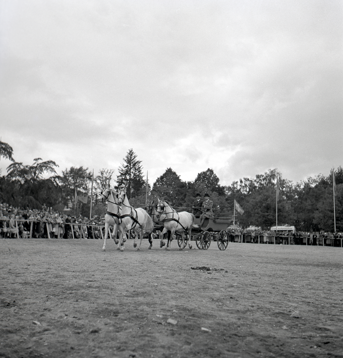 Uppvisning av körning med fyrspann och vagn på skolgården.