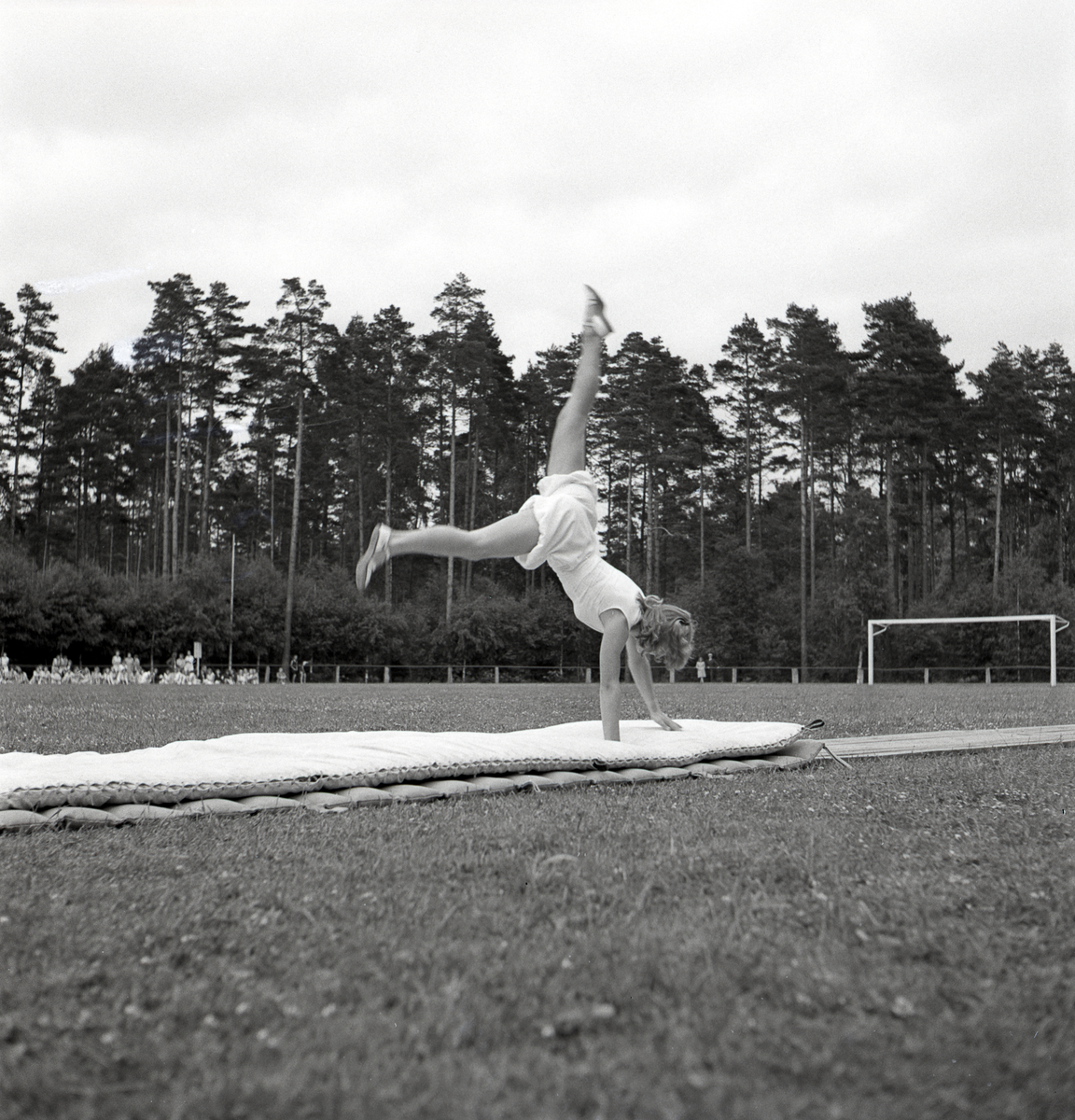 Uppvisning på matta av kvinnlig gymnast under Gymnastikens dag.