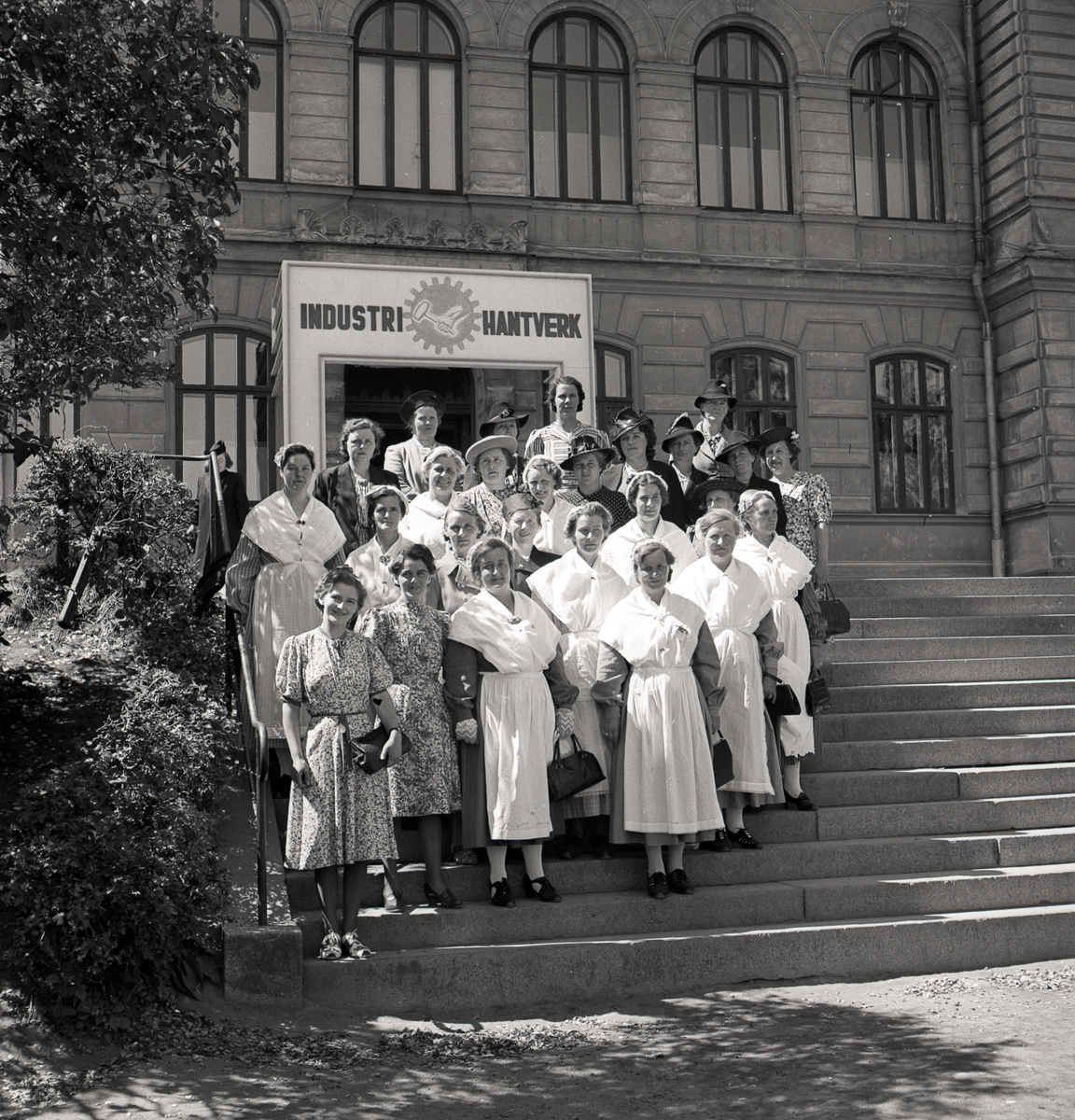 Ett antal kvinnor i husmorsdräkt, plus några "civila", har ställt upp