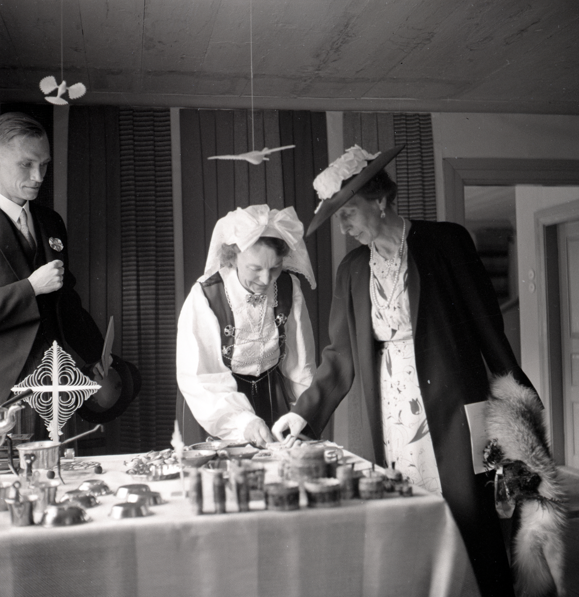 Kronprinsessan Louise tittar på hemslöjdsalster på Domprostgården.