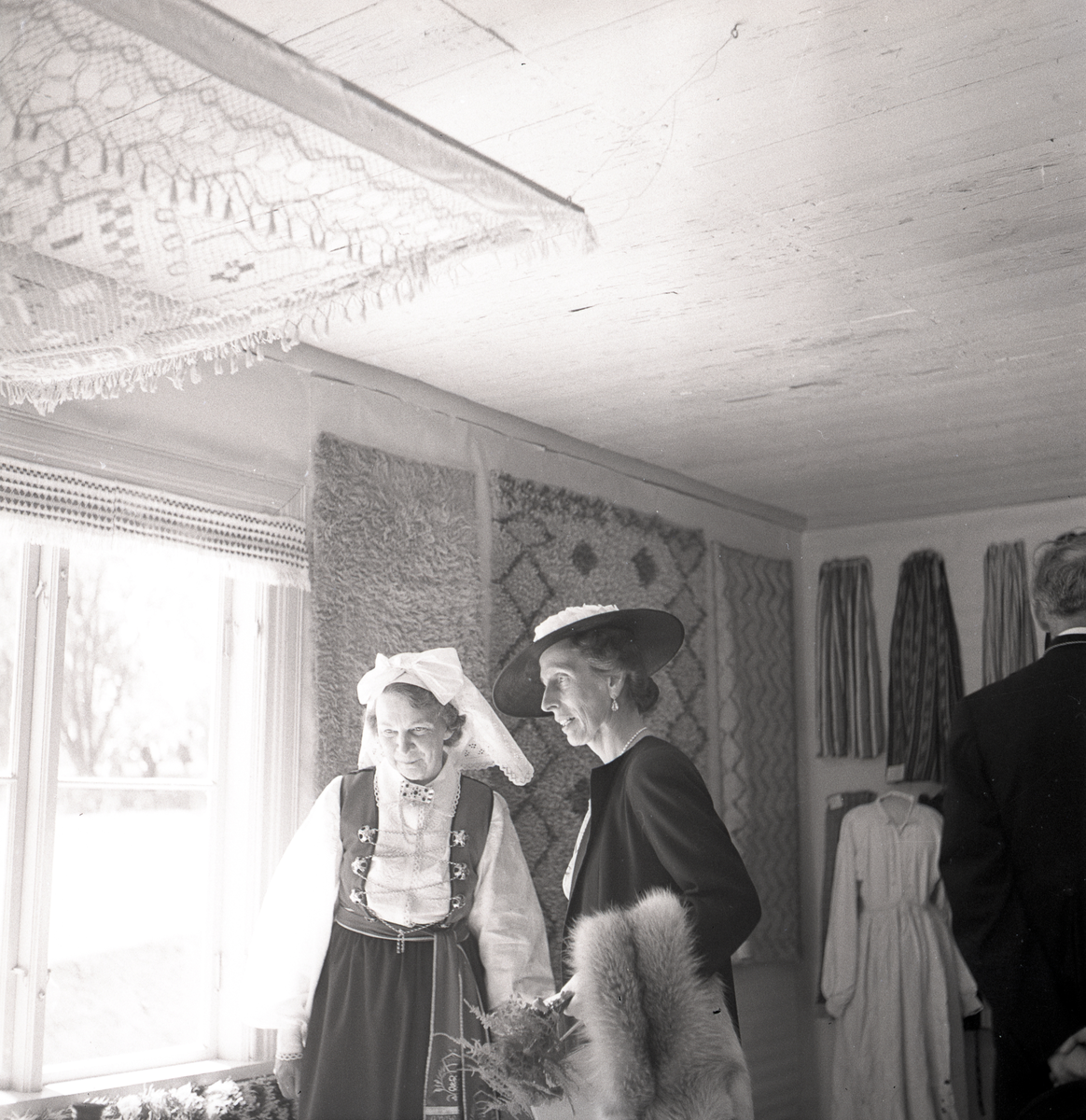 Kronprinsessan Louise ser på hemslöjd i Domprostgården.