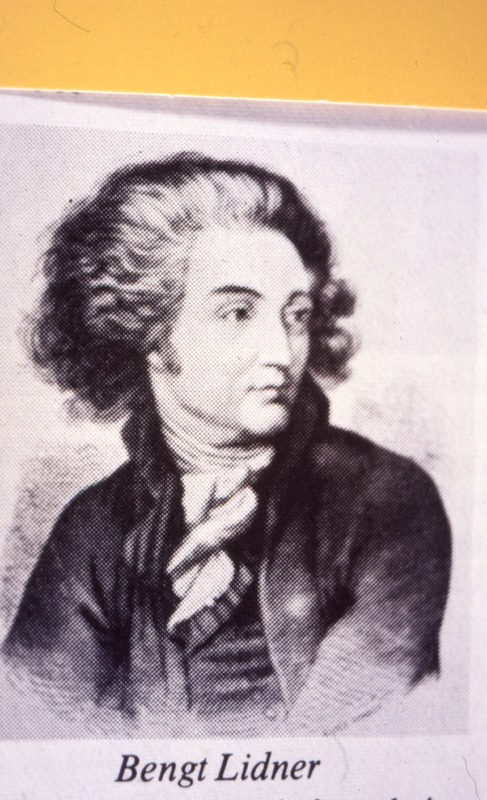 Bilden föreställer ett mansporträtt, formatet är bröstbild och mannen bär peruk. Under bilden står det Bengt Lidner.