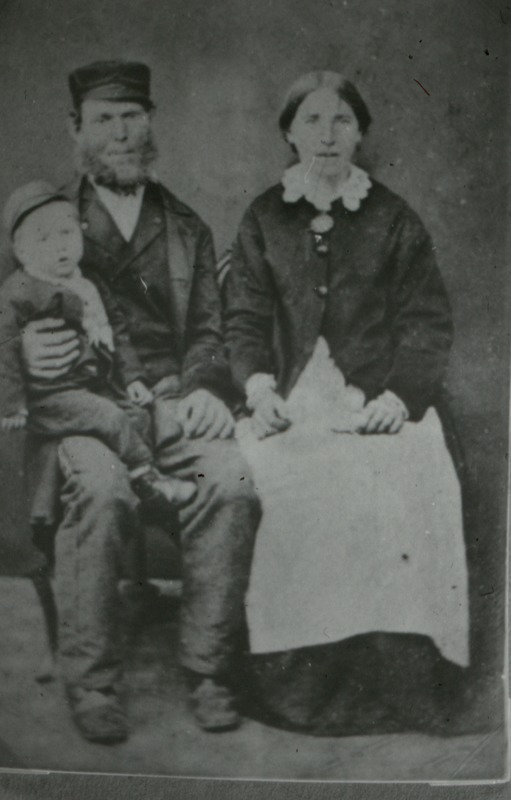 Bilden föreställer en man och en kvinna som sitter på varsin stol troligen i en ateljé. Mannen har ett barn i knäet. (Troligen tidigt 1900-tal)