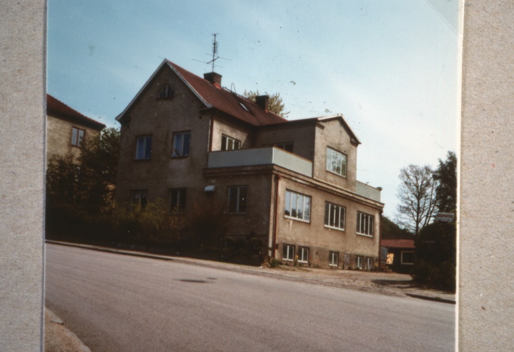 Bilden föreställer en tvåvåningsvilla. I förgrunden gata och trottoar. I bakgrunden ytterligare en villa och i kanterna träd.