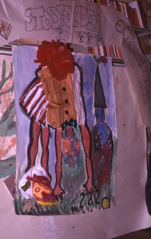 Bilden föreställer en målning på ett stort papper på en vägg, ovanför står det stodfonden. I förteckningen står det Kollegiefest nov.