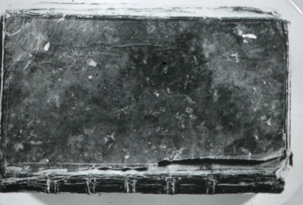 Bilden föreställer pärmen på en gammal bok.